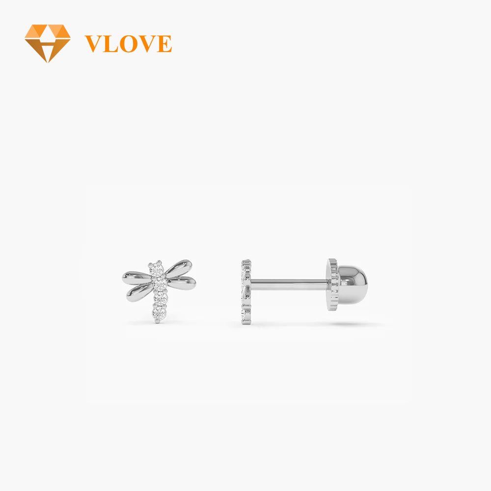14K Gold Dragonfly Diamond Stud Earrings | Helix Piercing Jewelry | Personalized Cute Earrings | VLOVE