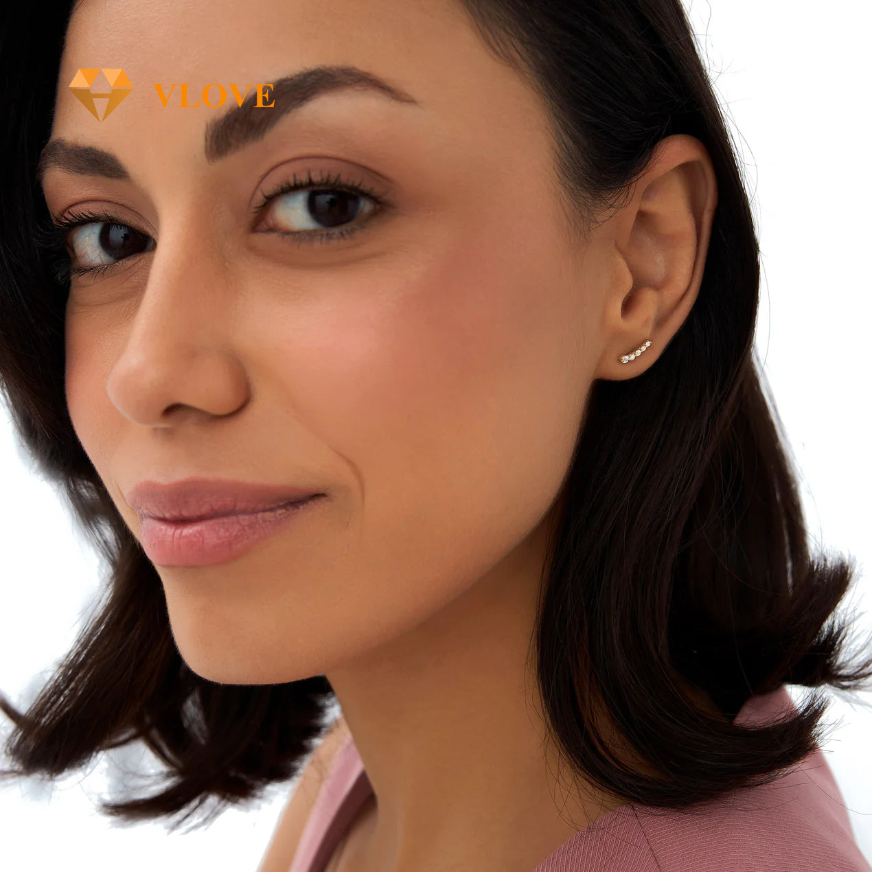 14K Gold Crawler Stud Earrings | Tiny Diamond Accent Earrings | Elegant Everyday Jewelry | VLOVE