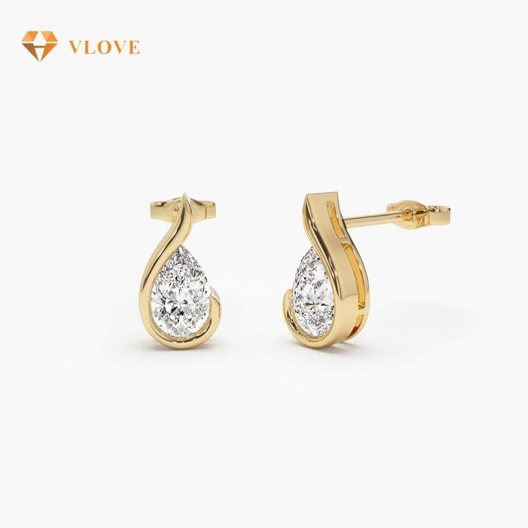 14K Pear Shaped Lab Grown Diamond Stud Earrings | 1.50 CTW Gold Earrings | Customizable Jewelry for Women | VLOVE