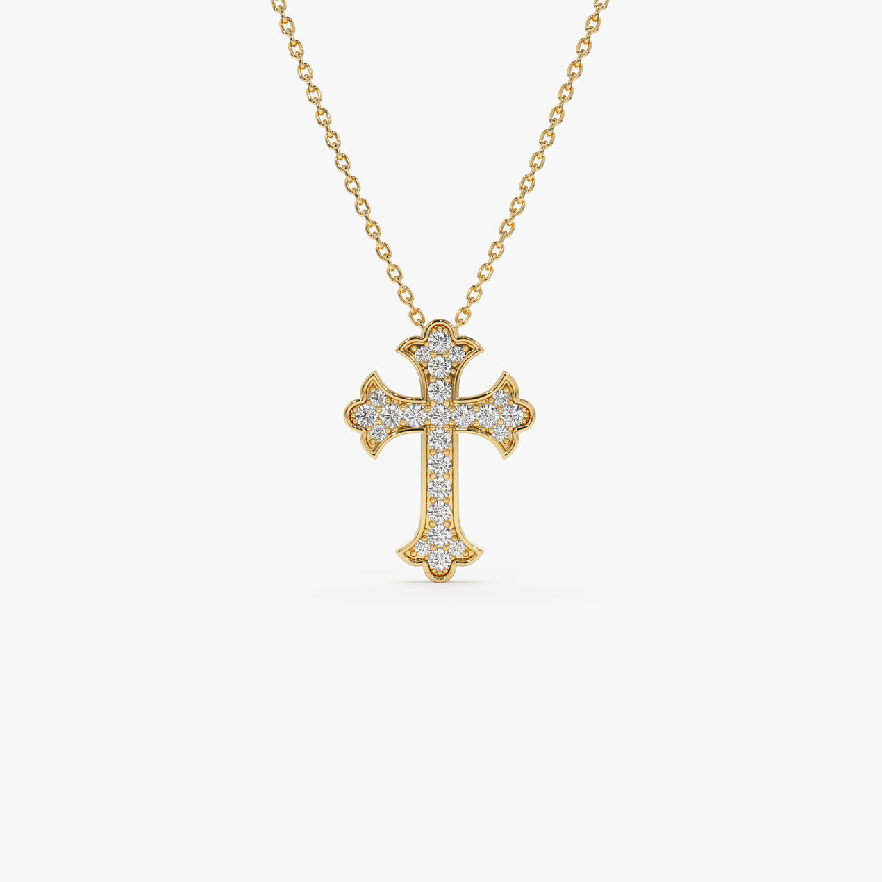 14K Gothic Diamond Cross Necklace | Pave Setting Religious Jewelry | Unisex Statement Piece | VLOVE