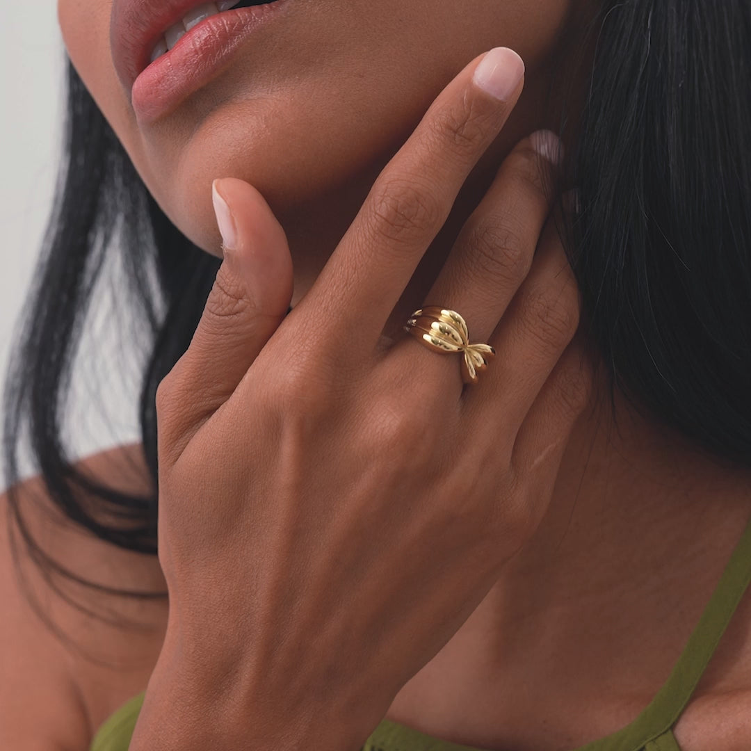 14K Gold Bowknot Ring | Vintage Style Sculpted Dome Band | 10MM Statement Jewelry for Women | VLOVE