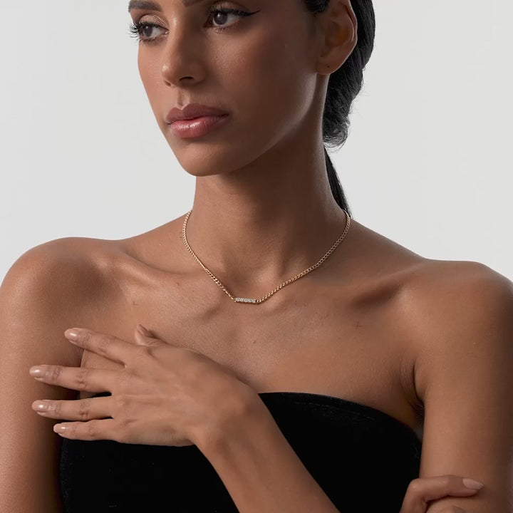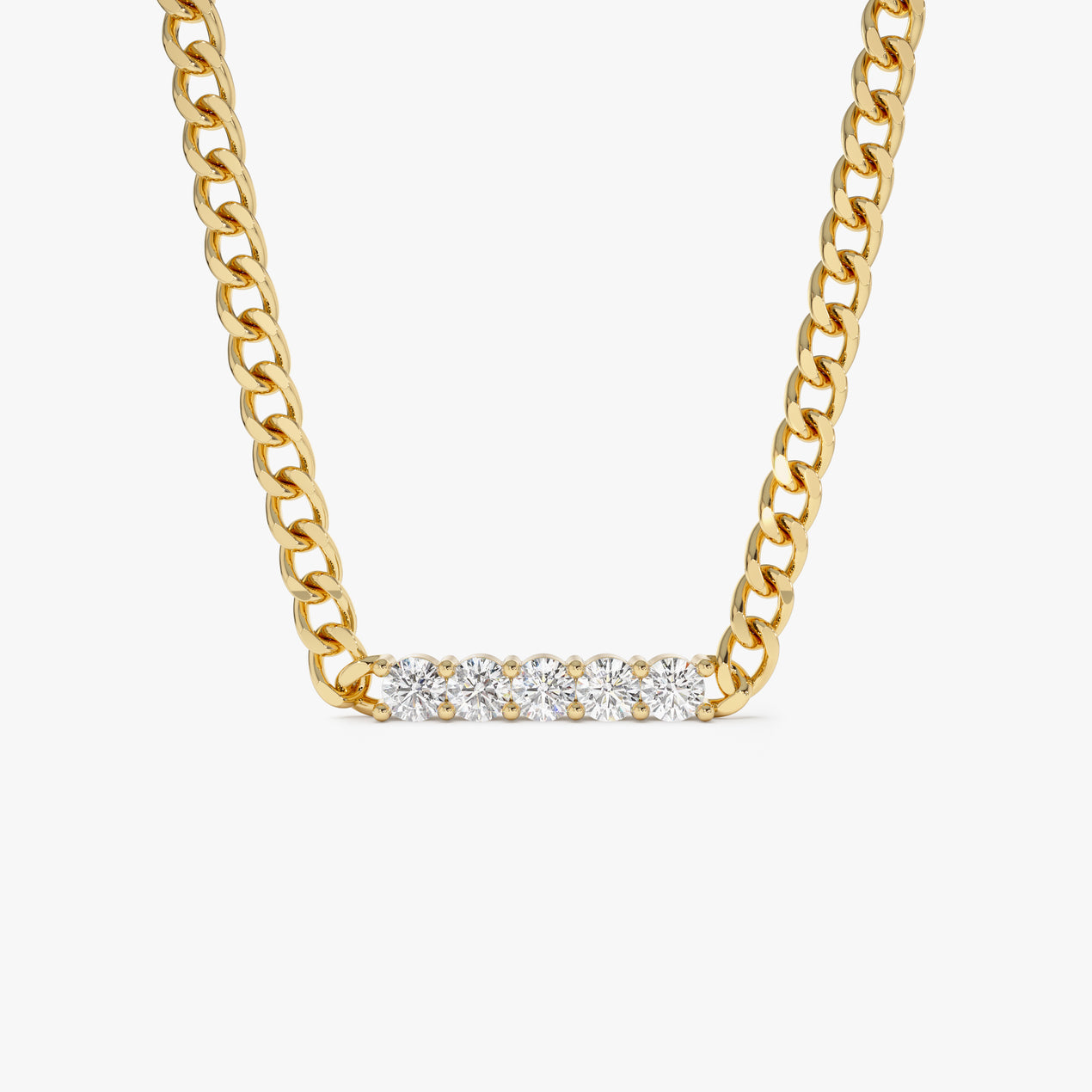 14K Diamond Bar Cuban Chain Necklace | Solid Gold Statement Jewelry | Men's & Women's Luxury Necklace | VLOVE