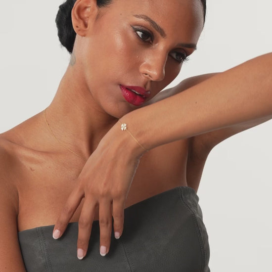 14K Solid Gold Diamond Clover Charm Bracelet | Lucky Four Leaf Clover | Adjustable Women's Jewelry | VLOVE