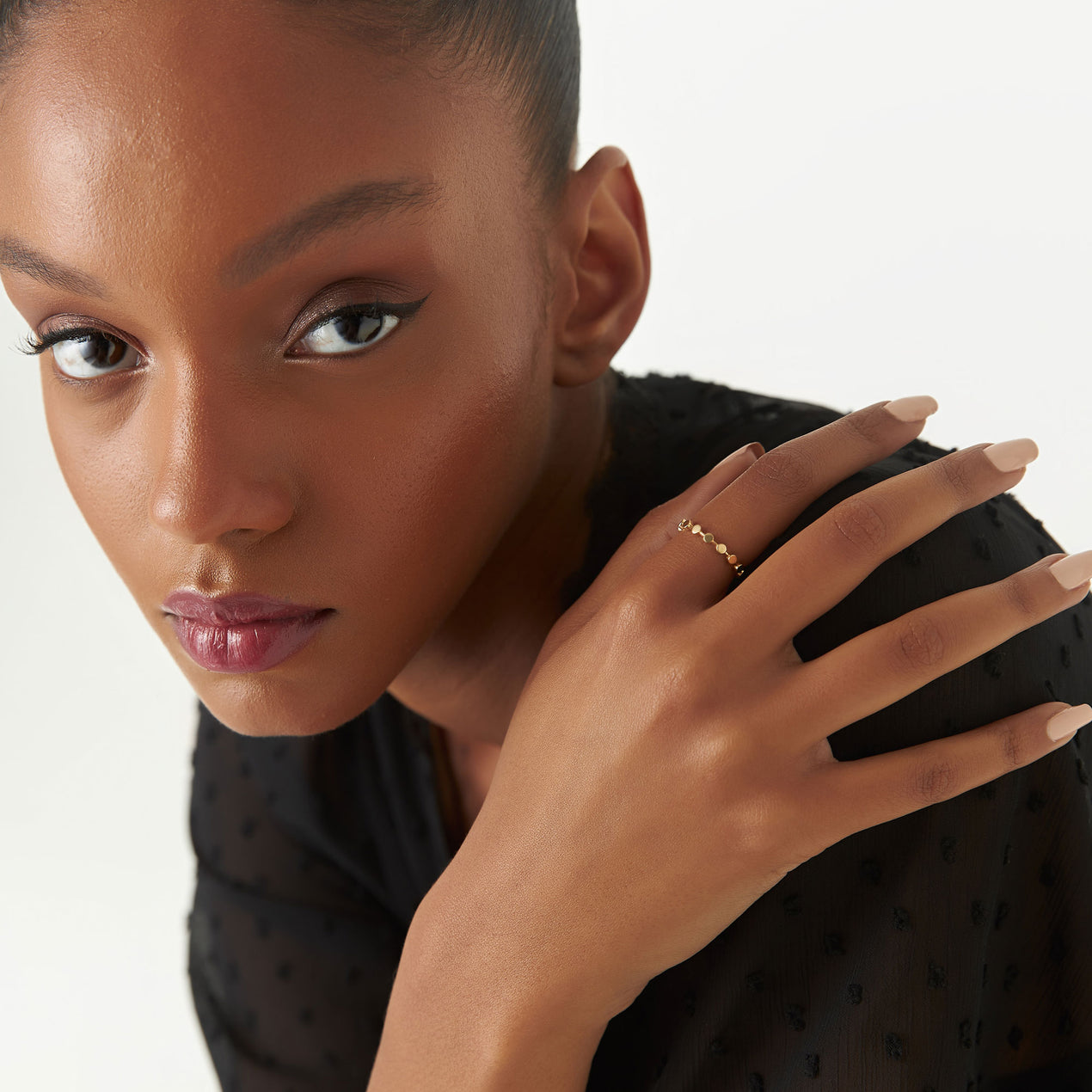 14K Geometric Bead Stacking Ring | Tiny Round Beads Design | Delicate Layering Jewelry | VLOVE