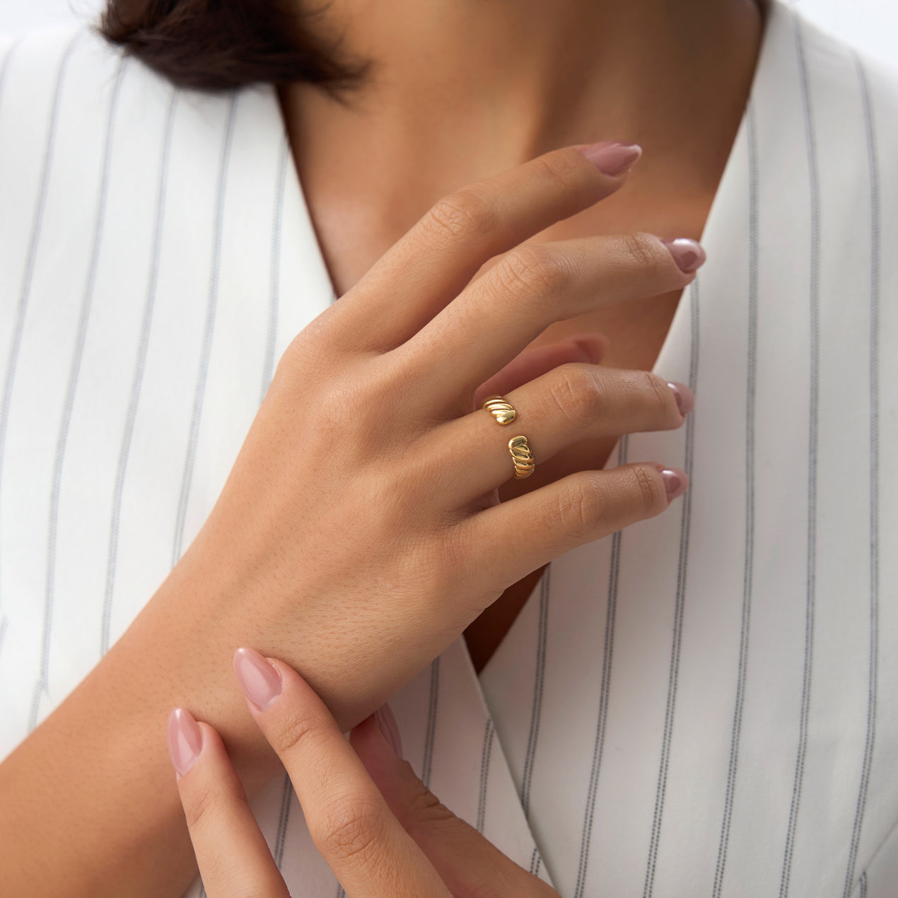 14K Rope Cuff Ring | 5MM Solid Gold Statement Band | Textured Jewelry for Men & Women | VLOVE