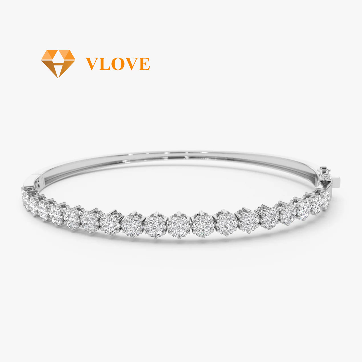 14K Gold 1.15CTW Cluster Diamond Bangle | Luxury Stackable Bracelet for Women | Customizable Jewelry | VLOVE