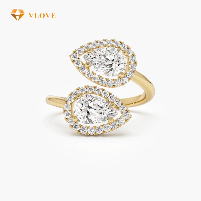Lab Grown Diamond Halo Bypass Ring | Round & Pear Cut 1.90 CTW | 14K/18K Gold Engagement Ring for Women | VLOVE