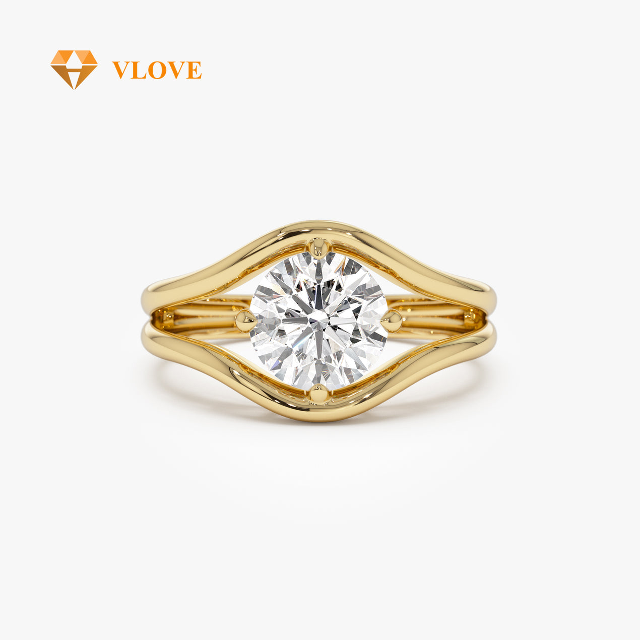 Lab Grown Diamond Split Shank Ring | 1.50 CTW Round Cut | 14K Gold Engagement Ring for Women | VLOVE