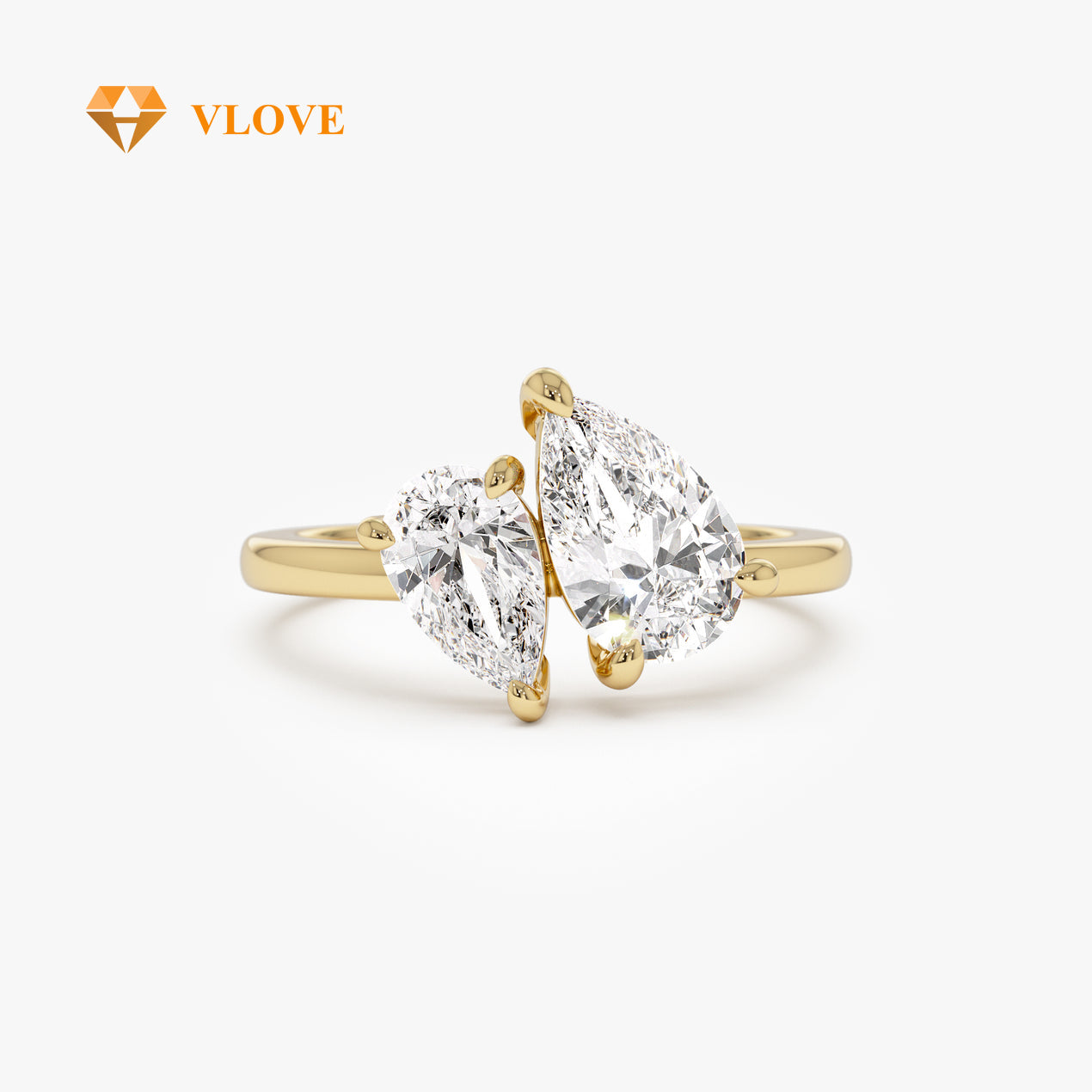 Toi Et Moi You and Me Lab Grown Diamond Ring | Pear Shaped 2.05 CTW | 14K Gold Engagement Ring for Couples | VLOVE Fine Jewelry